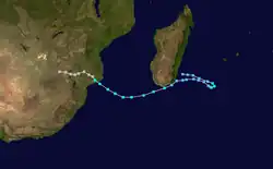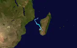 An extratropical disturbance formed east of Madagascar on January 11, and transitioned into a subtropical depression the next day. It retained subtropical characteristics as it moved towards the African mainland, but by January 15, it reached the equivalent of cyclone strength and was allocated the name Dando by NWS Madagascar. The name was provided by Tanzania.[17] On January 16, the last advisory was issued for Dando, as the system weakened to a remnant low. After making landfall on January 17, the remnants of Dando moved inland, before dissipating on January 18.