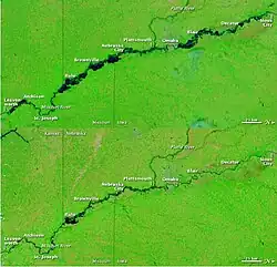 - ^ "NASA – Landsat 5 Captures Missouri River Flooding Near Omaha". Nasa.gov. June 30, 2011. Archived from the original on July 10, 2011. Retrieved July 8, 2011.