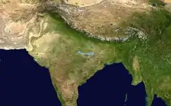 Late on September 20, an area of low pressure developed approximately 200 nautical miles (370 km; 230 mi) south of Chittagong, Bangladesh.[22] Under the influence of strong vertical wind shear and monsoonal activity in the Bay of Bengal, the system was unable to strengthen and the JTWC later reported that the system had dissipated.[23] However, on September 22, the IMD started monitoring the system as a Depression and initiated bulletins on the system, designating it BOB 03.[24] Late on that day, BOB 03 drifted northwest and made landfall over north Orissa close to Balasore.[25] After moving further northwestwards, the depression remained practically stationary over Jharkhand. By the evening of September 23, IMD reported that the depression had weakened into a well-marked low-pressure area in their final bulletin for the system, as the storm dissipated to a remnant low.[26]