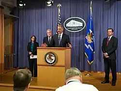 On 11 October 2011, the U.S. Attorney General and the Director of the FBI announced two individuals have been charged in federal court for their participation in a plot allegedly directed by elements of the Iranian government to murder the Saudi Ambassador to the United States with explosives while the Ambassador was in the United States.[12][13] "The criminal complaint unsealed today exposes a deadly plot directed by factions of the Iranian government to assassinate a foreign Ambassador on U.S. soil with explosives," said Attorney General Eric Holder.[13] "Though it reads like the pages of a Hollywood script, the impact would have been very real and many lives would have been lost," FBI Director Robert Mueller said.[12] The criminal complaint charged Manssor Arbabsiar, a 56-year-old naturalized U.S. citizen holding both Iranian and U.S. passports, and Gholam Shakuri, a commander in Iran's Quds Force, the special-operations unit of the Islamic Revolutionary Guard Corps.[13][14]
