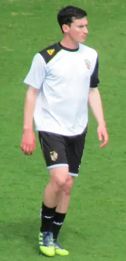 With the club's new owner in place, Adams signed six players early in July. He first signed midfielder Darren Murphy and winger Jennison Myrie-Williams (who had impressed in a loan spell at the club the previous season) from Stevenage, as well as Colchester United attacker Ashley Vincent.[2] He then made another triple swoop by bringing in Shrewsbury Town goalkeeper Chris Neal, Crewe Alexandra centre-back David Artell, and former Wales international Richard Duffy.[3] Highly rated striker Liam Dickinson, veteran forward Darren Byfield, and Irish attacker Tadhg Purcell also joined the club on trial.[4][5][6] Adams appointed Doug Loft as club captain at the end of July.[7] The pre-season tour of Ireland was hailed as a success, whilst Vale recorded wins in each of their encounters with non-League opposition.[8] However, David Artell left the club as a free agent days before the start of the season, as he refused to sign a contract that reflected the club's status as 'in administration' (the initial contract he signed listed Keith Ryder as the club's owner, and was therefore invalid).[9]