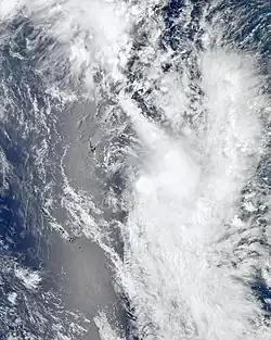 During December 30, Freda continued to intensify further, before RSMC Nadi reported that Freda had peaked as a category 4 severe tropical cyclone with 10-minute sustained windspeeds of 185 km/h (115 mph).[40][44] The JTWC subsequently followed suit and reported that Freda had peaked with 1-minute sustained windspeeds of 205 km/h (125 mph) which made it equivalent to a category 3 hurricane on the SSHS.[45] After it had peaked, Freda started to quickly weaken as it continued to move towards the south-southeast, as vertical windshear over the system increased and caused convection over Freda's northern semicircle to gradually wear away.[46] By 0000 UTC on January 1, the JTWC reported that Freda had become equivalent to a category one hurricane, while RSMC Nadi had reported that the system had weakened into a category 2 tropical cyclone.[45][47] Throughout that day, Freda continued to weaken before at 1800 UTC after deep convection had become displaced to the east of the low level circulation center, RSMC Nadi reported that the cyclone had weakened into a tropical depression.[48] During the next day the JTWC issued their final advisory on the system after the low level circulation center had become fully exposed before the remnant tropical depression crossed the northern part of New Caledonia's Grande Terre Island.[40][49][50] After crossing New Caledonia's biggest island, Freda started to move towards the southeast between Grande Terre and the Loyalty Islands, while the JTWC reported that Freda had become a subtropical cyclone, as it was positioned under a strong subtropical westerly flow.[45][51] The remnant depression was subsequently last noted during January 4, as it dissipated about 630 km (390 mi) to the southwest of Nadi, Fiji.[45][52]