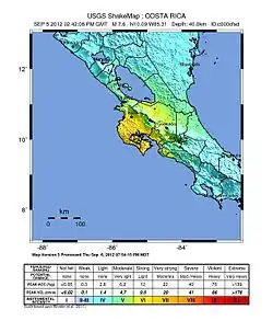 - ^ "Magnitude 7.6 – COSTA RICA: Technical". United States Geological Survey. 2012-09-05. Retrieved 2012-09-05.
