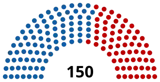 All 150 seats in the Parliament 76 seats needed for a majority | ||||||||||||||||||||||||||||||||||||||||