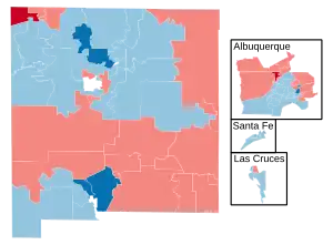 The 2012 New Mexico House of Representatives election took place as part of the biennial United States elections. New Mexico voters elected state representatives in all 70 of the state house's districts. State representatives serve two-year terms in the New Mexico House of Representatives. The election coincided with elections for other offices, including for U.S. President, U.S. Senate, U.S. House, and State Senate.[1] A primary election held on June 5, 2012, determined which candidates appear on the November 6th general election ballot.