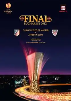 The 2012 UEFA Europa League Final was the final match of the 2011–12 UEFA Europa League, the 41st season of Europe's secondary club football tournament organised by UEFA (after the UEFA Champions League), and the 3rd season since it was renamed from the UEFA Cup to the UEFA Europa League. The match was played on 9 May 2012 at the Arena Națională in Bucharest, Romania,[5][6] and was contested between two Spanish sides – Atlético Madrid and Athletic Bilbao. The match ended with Atlético Madrid winning 3–0, with Radamel Falcao scoring two goals and Diego scoring another.[7][8] In doing so, Falcao was named man of the match, and became the first player to win back-to-back Europa League titles with different teams.