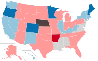 Democrats won the Colorado House of Representatives, Maine Senate, Maine House of Representatives, Minnesota Senate, Minnesota House of Representatives, New Hampshire House of Representatives, and Oregon House of Representatives that was previously tied. Meanwhile, Republicans won the Wisconsin Senate, which was briefly under Democratic control after multiple recall elections earlier in the year, and both chambers of the Arkansas legislature for the first time since 1874. The Alaska Senate went from a Democratic-led coalition to Republican control. The Washington Senate went from Democratic control to a Republican-led coalition, and the New York State Senate went from Republican control to a Republican-led coalition.