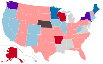 1. ^ Democratic control of the Wisconsin Senate was the result of recall efforts in 2011 and earlier in 2012.
