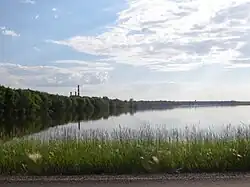 With excess spring flows on the Assiniboine River directed towards Lake Manitoba through use of the Portage Diversion, lake levels were above the desirable range of the lake of 810.0 to 812.0 feet above sea level (ASL) and even the upper limit of 813 feet ASL prior to the summer flood.[14][15] Continued use of the Portage Diversion occurred after it was re-opened to help mitigate against flooding, during which flows of over 34,000 cfs were directed towards the lake, well above the original designed channel capacity of the Portage Diversion of 25,000 cfs.[16][17] During the 2011 as well as the 2014 floods, work was done on the Portage Diversion to allow it to convey the higher volumes experienced. The result of this was that the water level of Lake Manitoba peaked at 814.6 feet putting residents on the lake at risk of flooding and damage from wind events.[18]