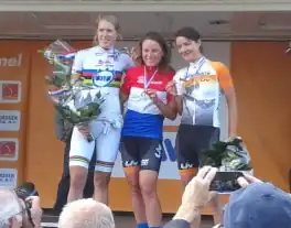 At the Open de Suède Vårgårda TTT, the team finished third in the team time trial, with a good prospect of the team's goal to win a medal at the World Championships. In begin September Ellen van Dijk won the time trial of the Boels Rental Ladies Tour, with a 12 seconds gap over her main rival Lisa Brennauer. Her first international time trial victory of the season.[21] With the other stages ending in a bunch sprint and sprinters winning the bonification seconds, Van Dijk finished third in the general classification. A final time trial test for Ellen van Dijk before the World Championships was the Chrono Champenois ITT. Halfway the 33.40 kilometres (20.8 miles) time trial she had a 39 seconds advantage over Hanna Solovey, but she finished second 8 seconds behind her because she lost about a minute after riding the wrong direction.[22]