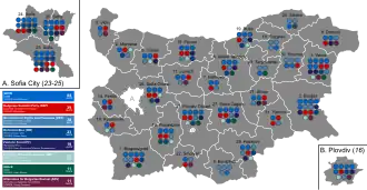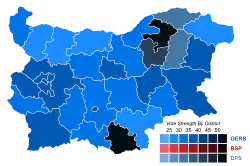 Parliamentary elections were held in Bulgaria on 5 October 2014 to elect the 43rd National Assembly.[1] GERB remained the largest party, winning 84 of the 240 seats with around a third of the vote. A total of eight parties won seats, the first time since the beginning of democratic elections in 1990 that more than seven parties entered parliament.[2] Boyko Borisov then became prime minister as head of a coalition with the Reformist Bloc and with outside support from the Patriotic Front and the Alternative for Bulgarian Revival.