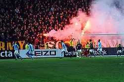 Malmö FF fans at Red Bull Arena at the away game against Red Bull Salzburg on 19 August 2014.