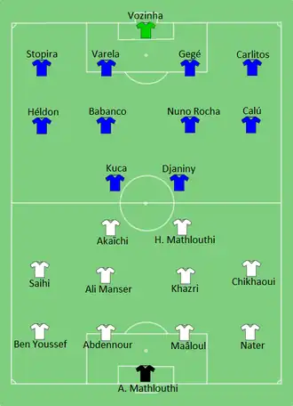 Tunisia opened the scoring in the 70th minute, as Ali Maâloul's cross was converted by Mohamed Ali Manser at the far post. Cape Verde equalized eight minutes later through Héldon's penalty after he was brought down by Syam Ben Youssef at the edge of the penalty area.[5][6]