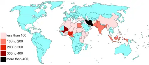 On 24 September 2015, a fatal crowd crush resulted in the death of more than 2,000 individuals, many of whom were suffocated or crushed, during the annual Hajj pilgrimage in Mina, Mecca, Saudi Arabia, making it the deadliest Hajj disaster in history.[5][6][7] Estimates of the number of dead vary: the Associated Press reported 2,411 dead,[1][8] while Agence France-Presse reported 2,236 killed.[3] Based on the total of the individual national reports cited in the table below (nationalities of victims), at least 2,431 lives were claimed.[note 1] The government of Saudi Arabia officially reported two days after the event that there had been 769 deaths and 934 injured.[1][9][10] These figures remained official at the time of the next year's Hajj and were never updated.[4] The largest number of victims were from Iran, followed by Mali and Nigeria.[11]