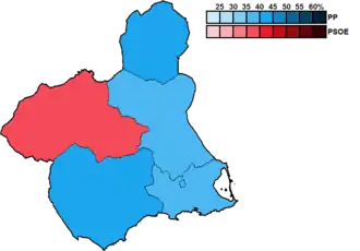 ![]() Constituency results map for the Regional Assembly of Murcia | |||||||||||||||||||||||||||||||||||||||||||||||||||||||||||||||||||||||||||||||||||||||||
