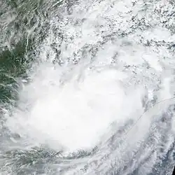 An area of low pressure developed off the east coast of India on June 17, about 135 nmi (250 km; 155 mi) east-southeast of Visakhapatnam.[8] Over the next two days, deep convection developed along the southern and western periphery of the centre of the system, predominantly under the influence of the advancing southwest monsoon.[9] Due to the moderate-to-strong wind shear caused by the monsoon, the disturbance failed to develop any further, and the JTWC had reported that it dissipated on June 20.[10] At the same time, however, the IMD started tracking this system as a depression, reporting gusts of up to 35 kn (65 km/h; 40 mph).[11][12] The depression made landfall over Odisha coast early on June 21, between Gopalpur and Puri.[13] Without any further information, the IMD stopped tracking BOB 01 on June 22.[14]