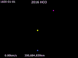 19. ^ a b Dermawan, B. (2019). Temporal Earth Coorbital Types of Asteroid 2016 HO3. Paper No. 012038 6th International Conference on Mathematics & Natural Sciences 2019. IOP Publishing. DOI: 10.1088/1742-6596/1127/1/012038
