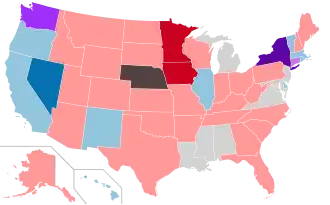 Democrats won both chambers in the Nevada Legislature and the New Mexico House of Representatives, while Republicans won the Kentucky House of Representatives for the first time since 1922, the Iowa Senate, and the Minnesota Senate. The Alaska House of Representatives flipped from Republican control to a Democrat-led coalition majority, and the Connecticut State Senate went from Democratic control to tied control.[2] Meanwhile, the New York Senate went from Republican to a Republican-led coalition.