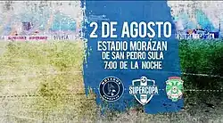 In a rainy night, the game started at 19:10 CST. The rules of the game allowed the teams to make a maximum of five substitutions.[2] After a 0–0 drawn in the first half, the goals came in the final minutes of the match. With two goals from Erick Andino (67) and Félix Crisanto (77), F.C. Motagua harvested a comfortable advantage in the score. However, Júnior Lacayo got in the score-sheet for C.D. Marathón seven minutes to regulation but were unable to level. With the win, Motagua obtained the first official Honduran Supercup in history.[3][4][5]