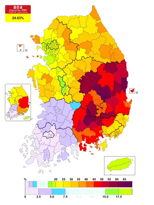 | Hong Jun-pyo | Nominated | 46.7% | 62.9% | 54.15% |