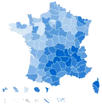 ![]() Vote percentage for Wauquiez by department <65% 65–70% 70–75% 75–80% 80–85% >85% | |||||||||||||||||||||