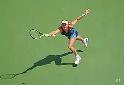 Her next tournament was the Australian Open. She was seeded second, her highest seeding since the 2012 Australian Open. She defeated Mihaela Buzărnescu in straight sets before going on to beat Jana Fett in three sets after saving two match points.[4] She then beat Kiki Bertens and Magdaléna Rybáriková both in straight sets to reach the quarterfinals. In the quarterfinals, she beat Carla Suárez Navarro in three sets to advance to her second Australian Open semifinal since 2011. In the semifinals she beat Elise Mertens to advance to her third Grand Slam final and her first since 2014.[5]