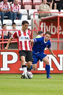A late Ryan Bowman goal sealed an opening day victory for Exeter against Sol Campbell's Macclesfield Town at St James Park, in a game watched by 4,502.[35] City made it two on the spin against Stevenage Town, again courtesy of a late goal, this time through Nicky Law.[36] In good form, an away EFL Cup tie against Coventry City F.C. beckoned. City however failed to carry over their league form, with a young side (featuring Ben Chrisene, who aged 15 years, 7 months and 1 day, became the club's youngest ever player to make a senior appearance) being defeated 4–1, with Sweeney scoring a consolation goal.[37]
