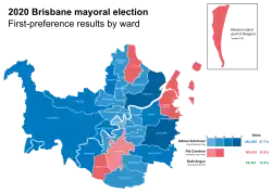 - ^ "Lord Mayor - Brisbane City Council 2020 Election Results | ECQ (Electoral Commission of Queensland)". ECQ (Electoral Commission of Queensland). Retrieved 28 March 2020.