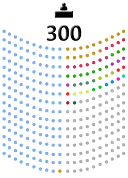 Originally upon its re-establishment, the body was to consist of at least 120 elected members and 60 appointed by the president.[8] The House later fixed the numbers at 300 senators, with one third appointed by the president, one third directly elected in 27 single member constituencies coterminous with the Governorates under a two-round system,[10] and the last third directly elected as well, under a closed party list system in four multi-member constituencies with a five percent threshold.[11]