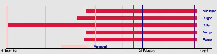 • 13 January: MP/MEP nominations close, party announces that Allin-Khan, Burgon, Butler, Murray and Rayner all proceed to the next round