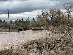 After a bridge across Mill Creek washed out southeast of Walla Walla, the volunteer fire department attempted to rescue residents using a converted military vehicle. This got stuck and extra equipment had to be called in to get it out.[9] As a precautionary measure the city of Walla Walla closed some bridges across Mill Creek, but the artificial channel did not overflow and the bridges reopened once the water level dropped.[10]