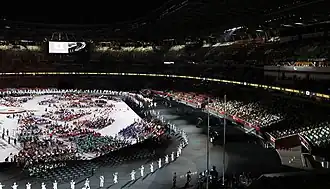 The Japan National Stadium, also referred to as the Olympic Stadium, served as the main stadium for the opening ceremony. The stadium will also serve as the main stadium for the closing ceremony, and the athletics/track and field events.[7]