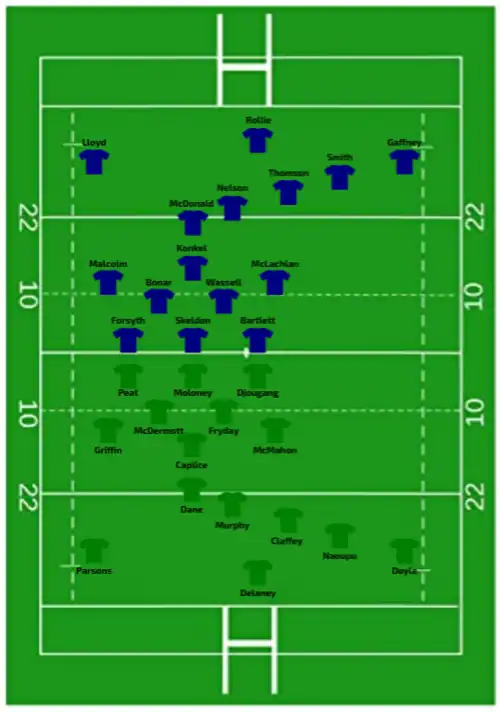 | 13:00 GMT (UTC±00:00) | Try: Moloney 10' m Naoupu 15' m Parsons 67' m Pen: Murphy (1/1) 5' |