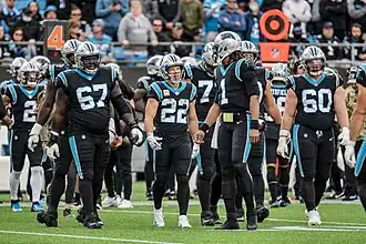 Both teams scored one-yard rushing touchdowns in the first quarter, with Ezekiel Elliott scoring first for the Cowboys before Sam Darnold scored for the Panthers. On the extra point conversion after Dak Prescott's touchdown pass to Blake Jarwin, the Panthers were penalized for having too many players on the field, and the line of scrimmage was moved to the one-yard line. On the ensuing two-point conversion, Prescott threw to Dalton Schultz, who was initially ruled to have successfully scored. However, upon further review, Schultz was tackled just short of the goal line by Jeremy Chinn and the tip of the football had not broken the plane of the end zone by the time Schultz's knee was down. On the next drive, Darnold scored his second rushing touchdown of the game. With the touchdown, his fifth rushing touchdown of the season, Darnold became the NFL's sole leader in rushing touchdowns on the season; he also became the first quarterback in NFL history to reach that mark in the first four games of the season.[5] The Panthers led 14–13 at halftime, but the Cowboys dominated the third quarter and pulled ahead. After the Panthers' opening drive of the second half ended with Zane Gonzalez missing a 54-yard field goal attempt wide left, Prescott threw for touchdowns on all three of the Cowboys' third-quarter drives, finding Amari Cooper, Schultz, and Cedrick Wilson Jr., respectively. The Cowboys tried another two-point conversion after Schultz's touchdown, but Prescott's pass to CeeDee Lamb was too high. The Cowboys defense also contributed, with rookie Trevon Diggs intercepting Darnold on back-to-back Panthers drives sandwiching the Cowboys' third touchdown drive of the quarter; Diggs also became a league leader with five interceptions on the season up to that point.[6] From the second Diggs interception, the Cowboys opened the fourth quarter with a 37-yard field goal from Greg Zuerlein, increasing their lead further to 36–14. The Panthers countered with a pair of touchdowns from Darnold to D. J. Moore to reduce the deficit to eight points, but the Cowboys retained possession for the rest of the game and won 36–28. The loss was the Panthers' first of the season, and it left the Arizona Cardinals and the Las Vegas Raiders as the only remaining undefeated teams, though the Raiders would lose as well the following day.