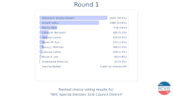 316. ^ "NYC Special Election 31st Council District Ranked Choice Voting Election Results Visualization". rcvis.com. RCVIS. April 15, 2021.