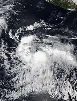 In early May, the passage of a convectively-coupled Kelvin wave (CCKW) enhanced the eastern Pacific monsoon trough, leading to an area of disturbed weather. This disturbance interacted with a Gulf of Tehuantepec gap wind event, which led to the formation of an ill-defined low-pressure area. Despite a marginal environment of wind shear and dry air, the system slowly organized and developed into a tropical depression around 06:00 UTC on May 9. Six hours later, it intensified into Tropical Storm Andres, becoming the earliest tropical storm on record in the East Pacific basin. Andres maintained peak winds of 40 mph (64 km/h) as it curved north-northwest, and the compounded effects of colder waters and drier air atop moderate wind shear instead caused the system to begin weakening. All associated convective activity dissipated by 06:00 UTC on May 11, when Andres was downgraded to a remnant area of low pressure. The low curved west on May 12 and dissipated later that day.[10]