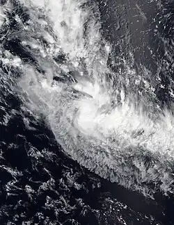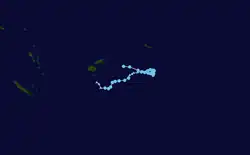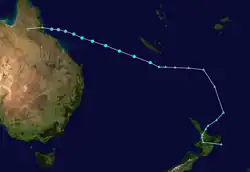Late on January 5, the FMS reported that Tropical Disturbance 03F had formed near New Caledonia.[19] The system generally moved southeast before the FMS ceased advisories on the system, on January 7.[20] However, on January 8, the JTWC gave the system's chance for development, although in favorable environment, as low since it was in close proximity with Hale.[21] But upon reanalysis, convection re-fired, and an eye feature was visible,[21] although the JTWC later reported that the system had dissipated the following day.[22]