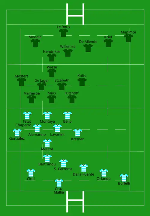 | Try: Samu 78' m Pen: Lolesio (1/1) 31' | Report | Try: de Allende 8' c Moodie 38' m Mostert 42' m Mapimpi 70' c Con: Willemse (1/3) 10' Steyn (1/1) 71' |