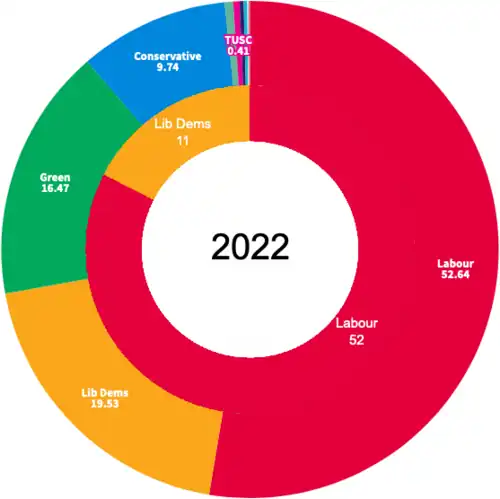 In the previous election in 2018, the Labour Party maintained its control of the council, winning 49 out of the 63 seats with the Liberal Democrats forming the council opposition with the remaining 14 seats.