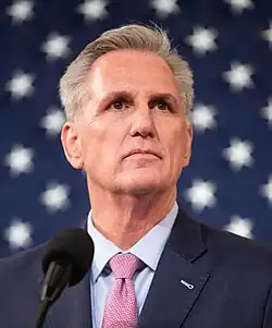 Control of the House would not be known until November 16, after Mike Garcia was projected to win reelection in California's 27th congressional district, giving Republicans a total of at least 218 seats;[46] and giving Republicans a narrow majority.[47] The size of the majority remained in doubt with several races still to be called more than one week after Election Day.[48] On November 17, after Republicans were projected to win back the House, Pelosi announced that she would not seek reelection as Speaker of the House,[49] and Hakeem Jeffries was later selected as the Democratic nominee by acclamation.[50] On November 15, McCarthy won an internal Republican caucus poll as the party's nominee for Speaker of the House;[46] as several members of the Republican caucus did not vote for him and had expressed opposition to his speakership, it cast doubt on how the 2023 U.S. speaker election, which began on January 3, would unfold.[51][52] McCarthy's speaker bid was the first of a party leader since 1923 that did not succeed on the first ballot.