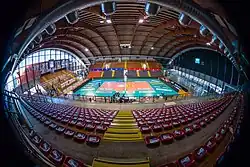 In May 2022, three countries — Bulgaria, Italy and North Macedonia — confirmed their co-hosting of the men's EuroVolley 2023 edition.[1] Ukraine was also supposed to be one of the hosts of EuroVolley but because of the ongoing war in the country they lost the right to host the tournament.[3] The only arena that was suitable for the championships was indoor arena Yunist in Zaporizhzhia.[4]