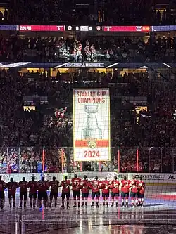 The Florida Panthers finished as the top seed in the Atlantic Division and met the in-state rival Tampa Bay Lightning in the first round of the 2024 Stanley Cup Playoffs.[3] The Panthers eliminated the Lightning in five games.[4] They then faced the Boston Bruins in the second round, winning the series in six games.[5] The Panthers defeated the New York Rangers in the conference finals in six games, advancing to the Stanley Cup Final for the second consecutive season.[6]