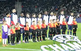 ![]() Paris Saint-Germain players lining up before an away match against Red Bull Salzburg, 10 December 2024 | ||||
