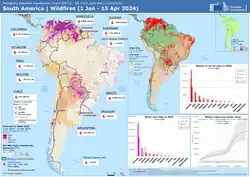 1. ^ a b Spring, Jake; Eschenbacher, Stefanie (2024-09-13). "A continent ablaze: South America surpasses record for fires". The Japan Times. Retrieved 2024-09-18.