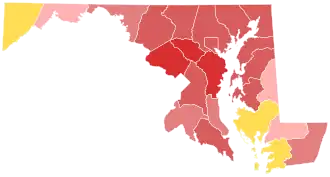 Alsobrooks: 40–50% 50–60% 60–70% 70–80% 80–90% >90% Hogan: 40–50% 50–60% 60–70% 70–80% 80–90% >90% | |||||||||||||||||