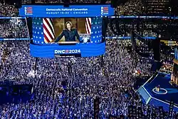 The 2024 Democratic National Convention was held from August 19 to 22, 2024, at the United Center in Chicago.[6] It was the first instance of a major party's presidential nominating convention held in Illinois since 1996.[7] Here, party delegates voted on their platform for the election and formally nominated vice president Kamala Harris as the Democratic nominee, with Minnesota governor Tim Walz as her running mate.
