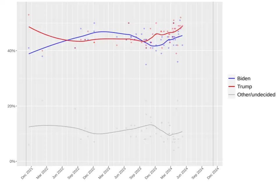 - ^ a b "Trump Leads Biden by 2% in 2-Way, and 1% in a 5-Way Trial Ballot Question" (PDF). RealClearPolitics. May 27, 2024.