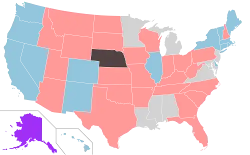 | Nebraska | 25[g] | 49[g] | 51[g] | 4 | N/A (unicameral) | |||