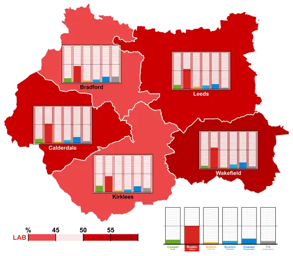 | Bradford | 55,878 | 44.73% | 19,206 | 15.38% | 14,394 | 11.52% | 9,791 | 7.84% | 19,889 | 15.92% | 5,758 | 4.61% | 124,916 |