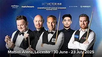 The 2025 Championship League (officially the 2025 BetVictor Championship League Snooker) was a professional ranking snooker tournament that took place from 30 June to 23 July 2025 at the Leicester Arena in Leicester, England.[1] It was the sixth staging of the ranking edition of the tournament, which was first held in 2020. Organised by Matchroom Sport, it was the first ranking event of the 2025–26 snooker season, preceding the 2025 Saudi Arabia Snooker Masters. The winner received £33,000 from a total prize fund of £328,000.